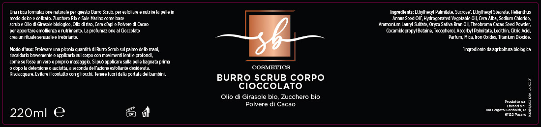 Attivi Principali: Burro di Cacao, Burro di Karité, Olio di Girasole