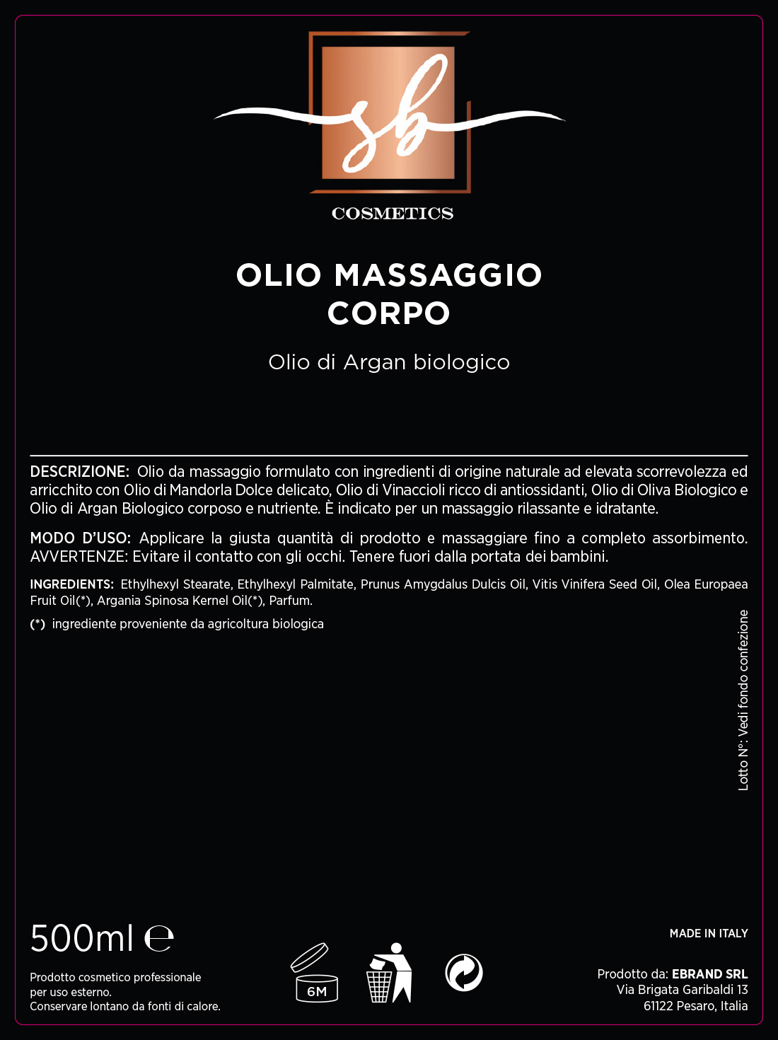 Modo d’uso: Applicare la giusta quantità di olio massaggio all’olio di argan e massaggiare fino a completo assorbimento.