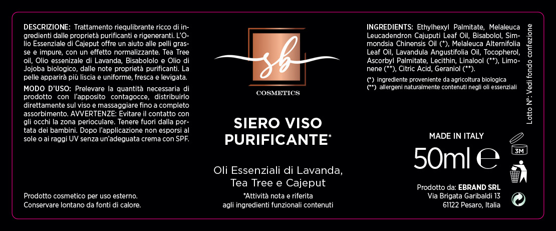 Attivi Principali: Bisabololo, Olio di Jojoba Ozonizzato, Olio Essenziale di cajeput, Olio Essenziale di Lavanda, Tea Tree